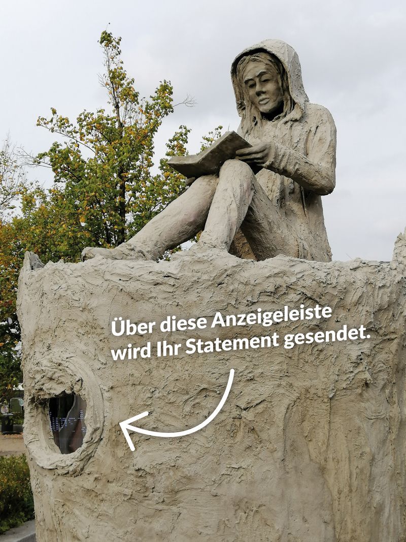 Eure Statements werden nacheinander jeweils für die Dauer eines Tages an diesem Kunstobjekt veröffentlicht.